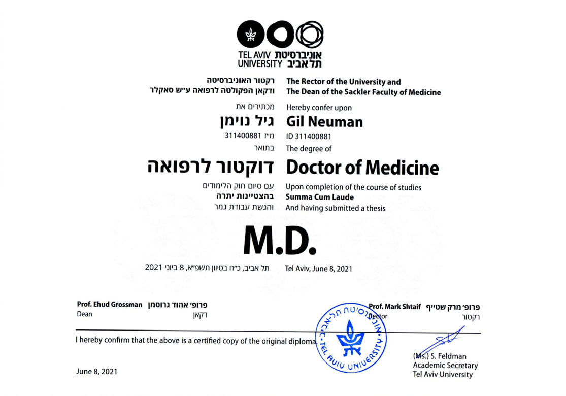 | 2020 | Intern, Mayanei Hayeshua Medical Center & Rabin Medical Center |